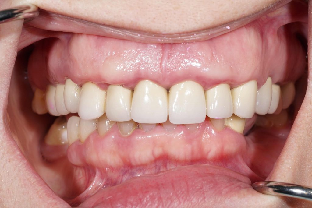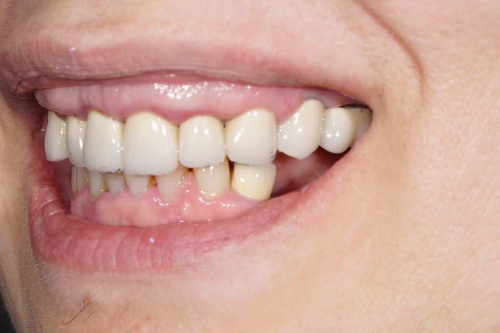 Пациент с неудачным протезом, рожденным на имплантате. Протезирование приводит к переломам фарфора и препятствует правильному жеванию.