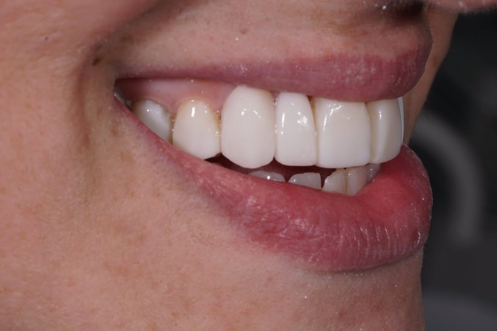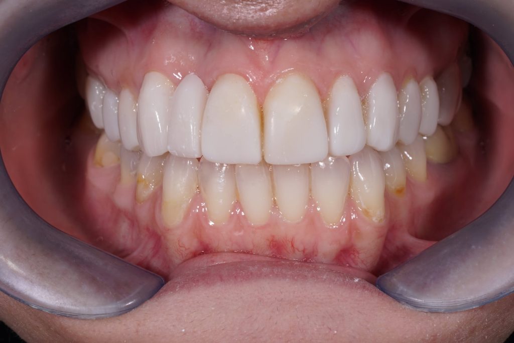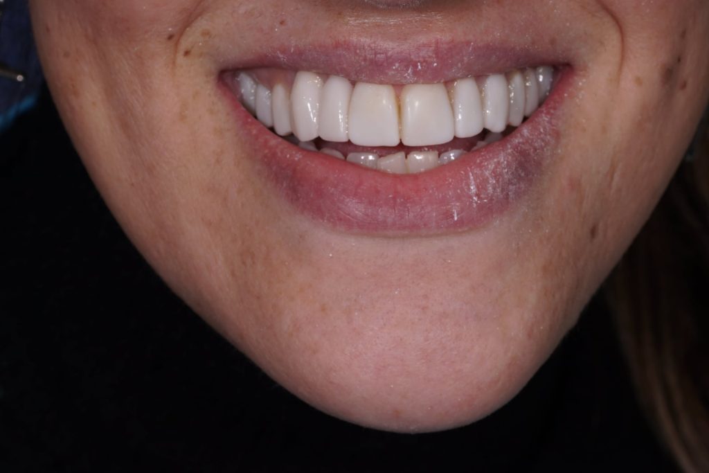 Основная проблема заключалась в лечении сильного обесцвеченного зенита десны вокруг центральных зубов после удаления предыдущих композитных виниров.